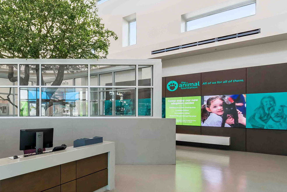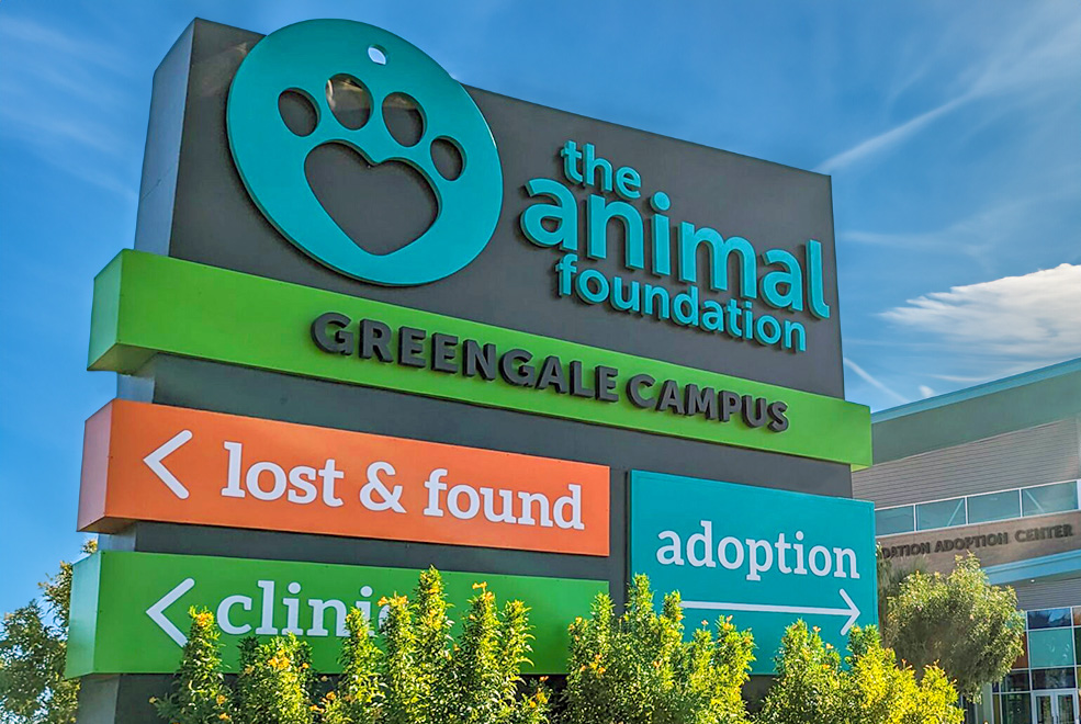 The Animal Foundation in Las Vegas was ready for an updated brand to coincide with the debut of its new campus. A comprehensive wayfinding and signage program now gives visitors easy navigation between the state-of-the-art Clinic and Adoption Center. Digital signage greets you as you arrive and digital donor signage welcomes you to the Adoption Center.