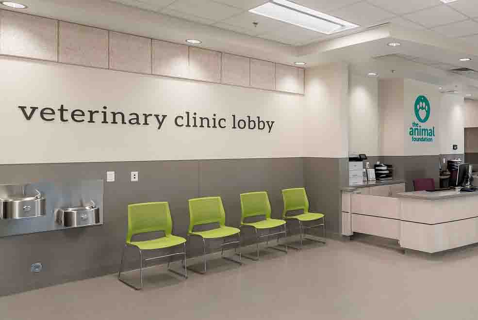 Veterinary Clinic lobby entrance with The Animal Foundation branding.