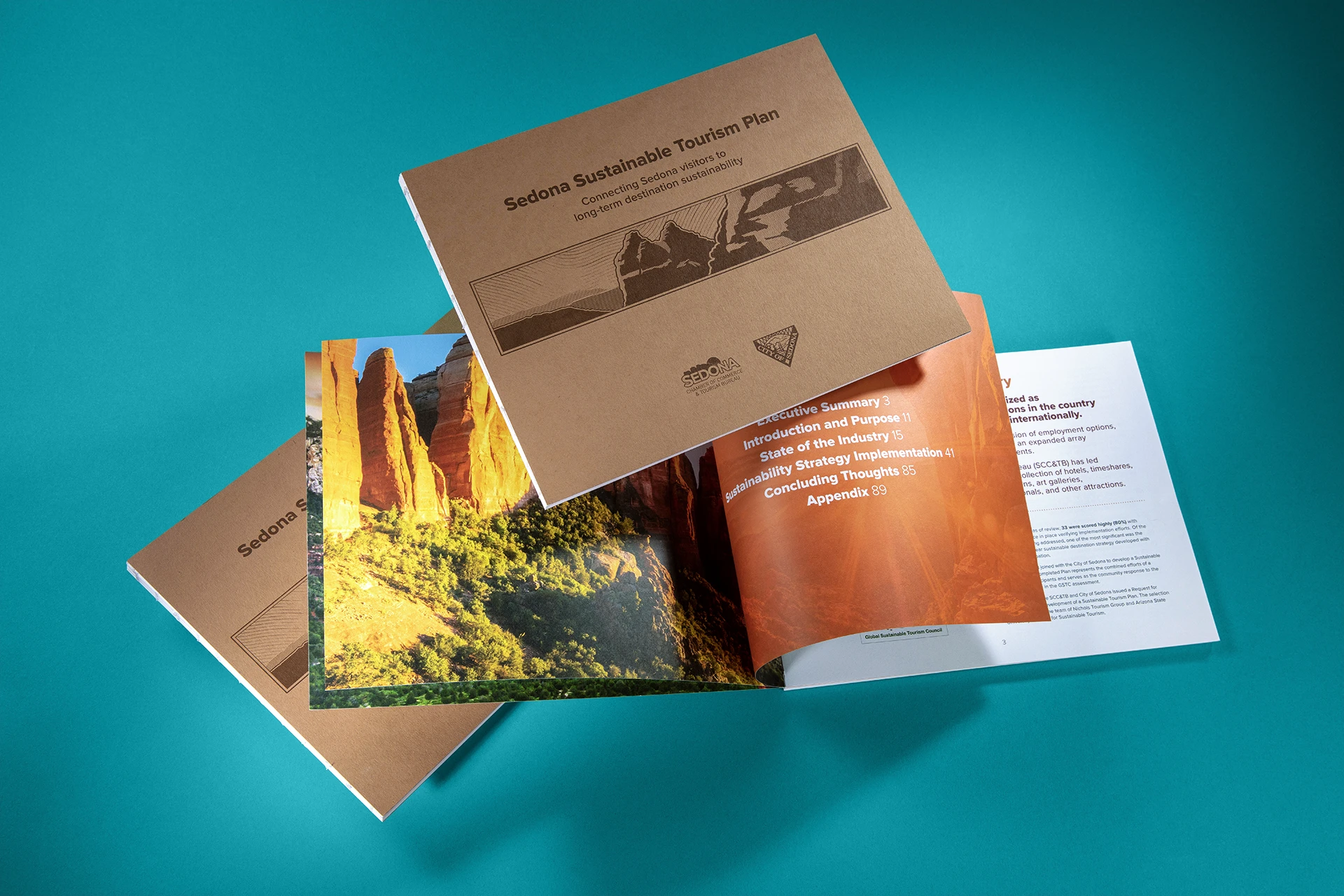 Designed using entirely recycled materials, the Sustainable Tourism Plan reflects Sedona’s natural environment and reinforces the city’s commitment to sustainability. This important publication presents a clear, forward-looking strategy for building meaningful, long-term connections with visitors while protecting the destination for future generations.