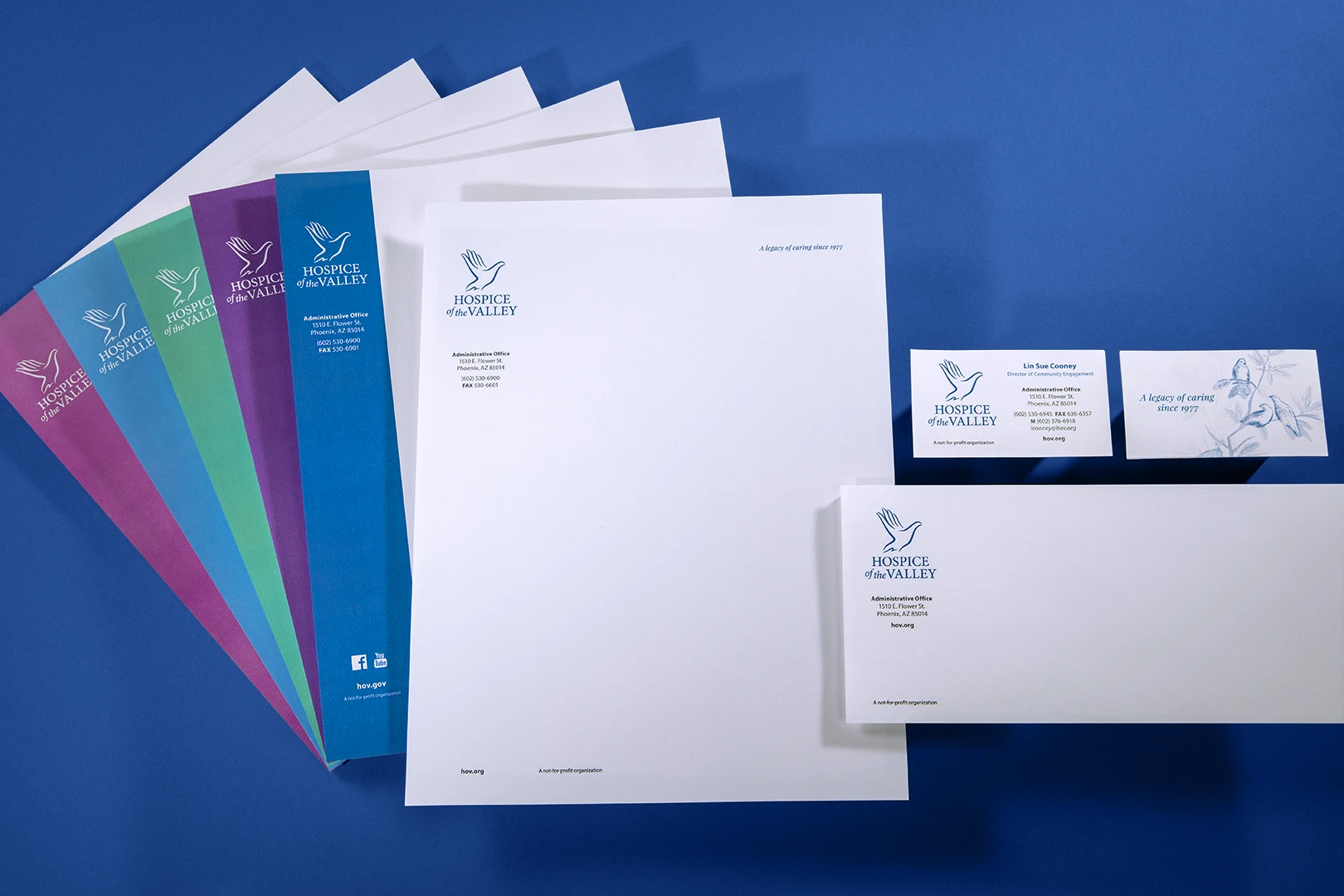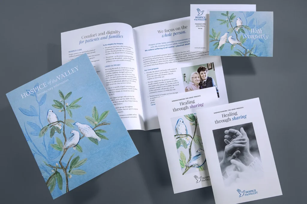 As Hospice of the Valley expanded its services and community presence, the need for a visual identity that reflected its mission of compassion, care and peace became increasingly important—one that spoke to experiences beyond clinical care and into the personal and spiritual. The resulting logo stands out in a crowded healthcare landscape, remaining instantly recognizable across brochures, websites, uniforms and vehicles.